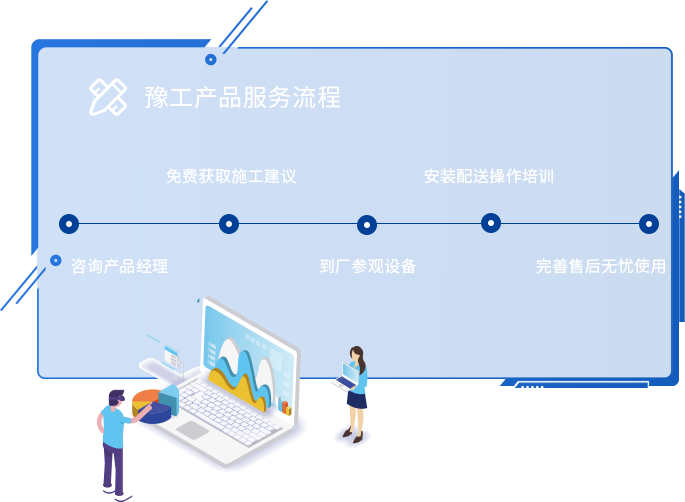 豫工機械為您提供從售前、售中到售后的全生命周期的無憂服務,將增值服務融入到與每一位客戶密切相關的任何一個環節。 豫工機械秉持'快速反應、暢快溝通、精準高效、合理周到"的服務宗旨。在接到客戶需求后,我們會在更短時間內與客戶取得聯系,了解客戶 具體需求情況,幫助客戶分析問題、解決難題。