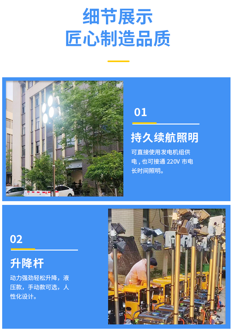 移動照明車適用于各種室內、外場工作場所的照明使用。