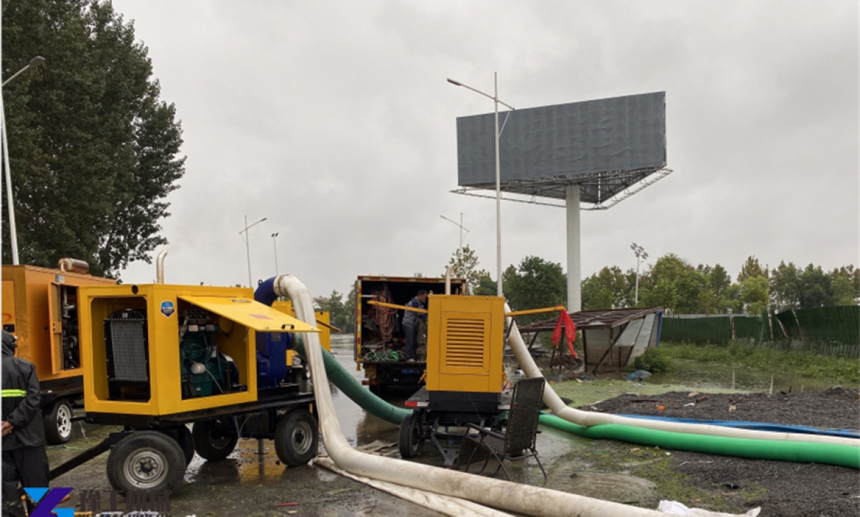 設(shè)備試機(jī),防汛泵出水口流量大,完全滿足客戶防汛要求。晚上暴雨如柱,五臺防汛泵同時(shí)上陣,控制住河水快速上漲的局面。